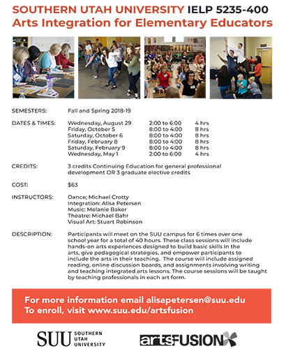 Deliver intensive practicum-style arts integration courses to all elementary education majors at Southern Utah University.