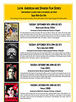 The Spanish Program hosts a yearly film series centered on a particular theme. At each screening, a faculty member introduces the featured film, offering essential artistic, cultural, and socio-political contexts. Each year we also select an outstanding graduating Spanish major to introduce one of the films. The selected student is mentored by one of our faculty members.