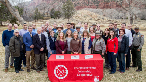 In addition the IIC partners with the Paiute Indian Tribe of Utah and the Kaibab Band of Paiute Indians, the State of Utah’s Southwest Region Division of Parks and Recreation, and Department of Workforce Service. Southern Utah University hosts the IIC and works with Dixie State University as an educational partner. This partnership is renewed every five years, and the Memorandum of Understanding was re-signed on February 14 in Zion National Park. Agency staff become mentors to interns teaching professional processes, skills, and give interns valuable real-world experience.